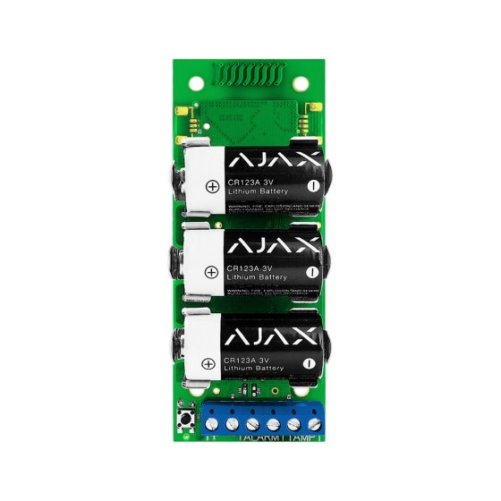 Επιτρέπει τη σύνδεση ενσύρματων περιφερειακών με το σύστημα Ajax. Ασύρματος πομπός περιφερειακών Τεχνικά χαρακτηριστικά •Χρήση:Εσωτερική / εξωτερική •Συμβατότητα:Ενσύρματοι και αυτόνομοι